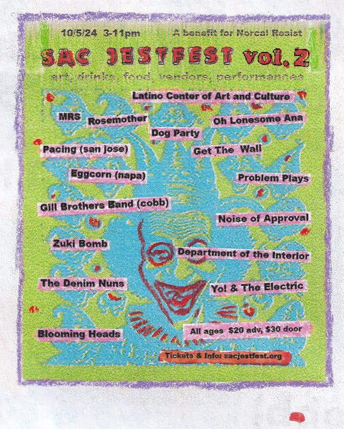 Ft. MRS, Rosemother, Dog Party, Oh Lonesome Ana, Get The Wall, Pacing (from San Jose), Eggcorn (from Napa), Problem Plays, Gill Brothers Band (from Cobb), Noise of Approval, Zuki Bomb, Department of the Interior, The Denim Nuns, Yo! & The Electric, Blooming Heads